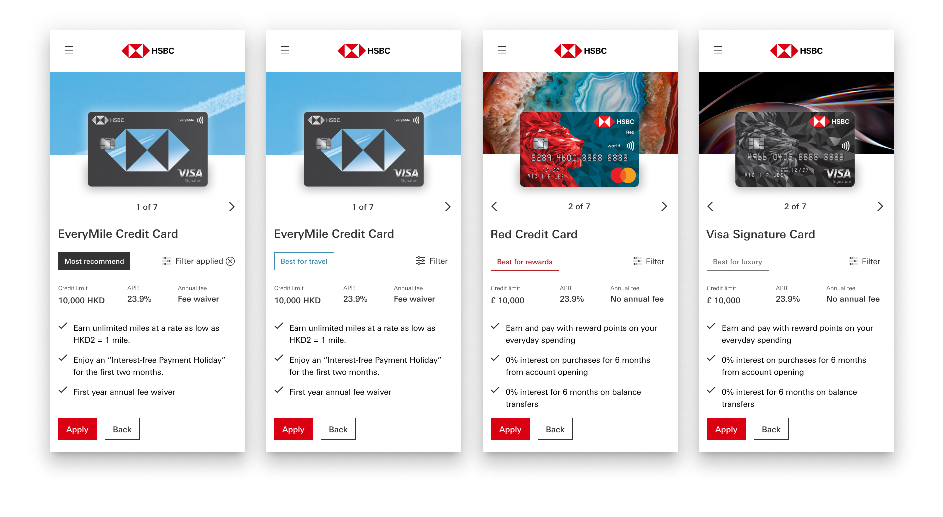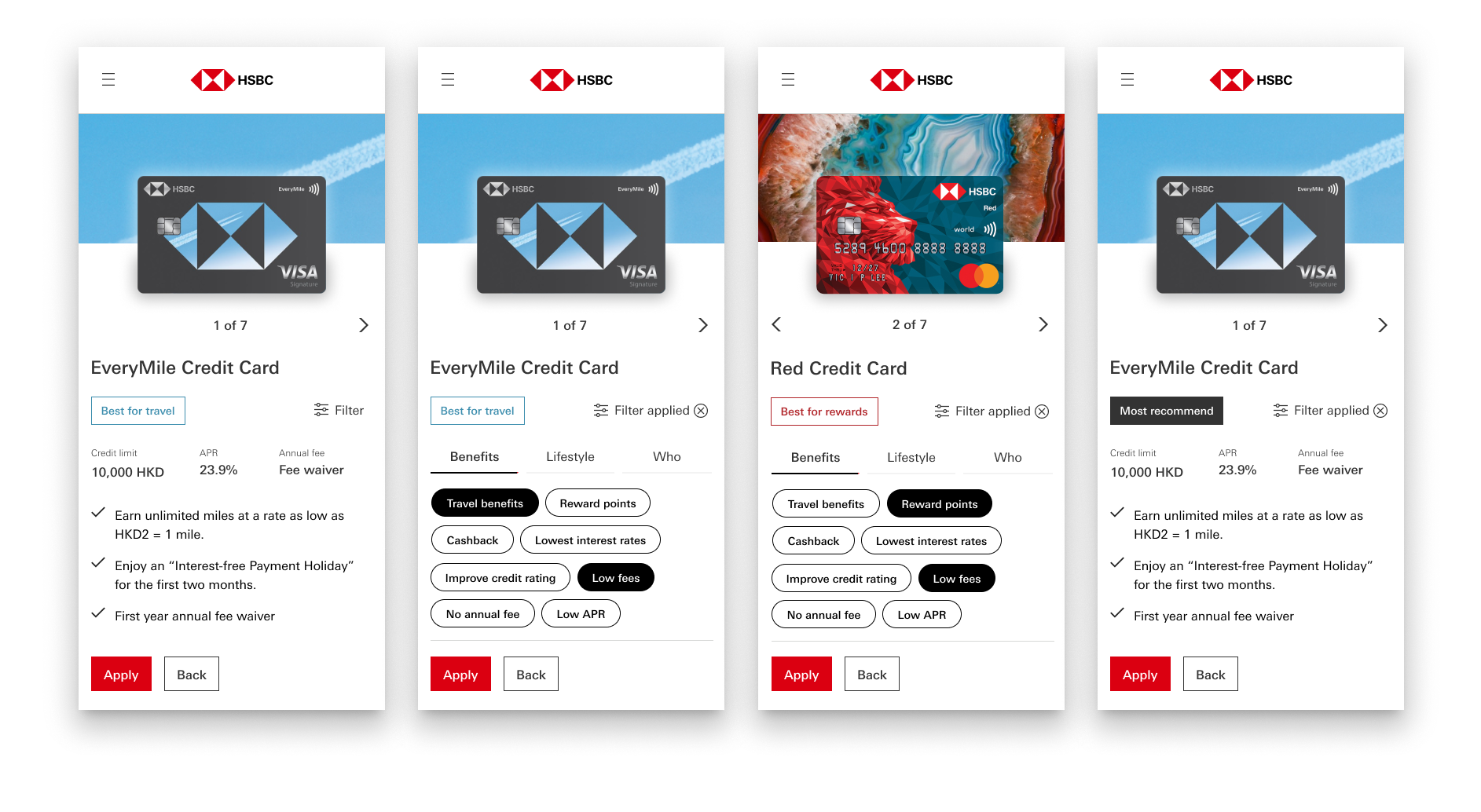 Product and UX design for choosing and onboarding credit card via mobile devices.